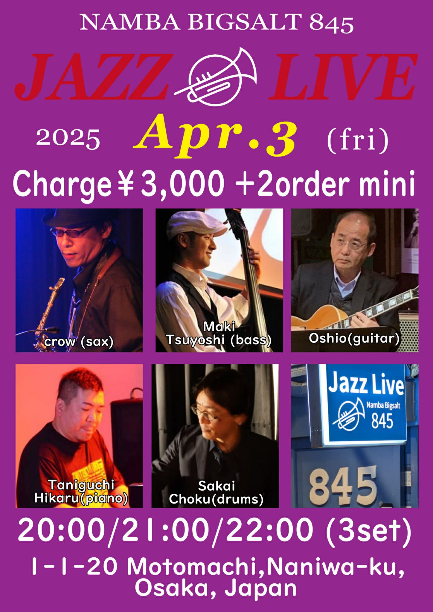 🔴2026/4/3(金)20:00- 難波Bigsalt 845 (3,000円/別途drink)