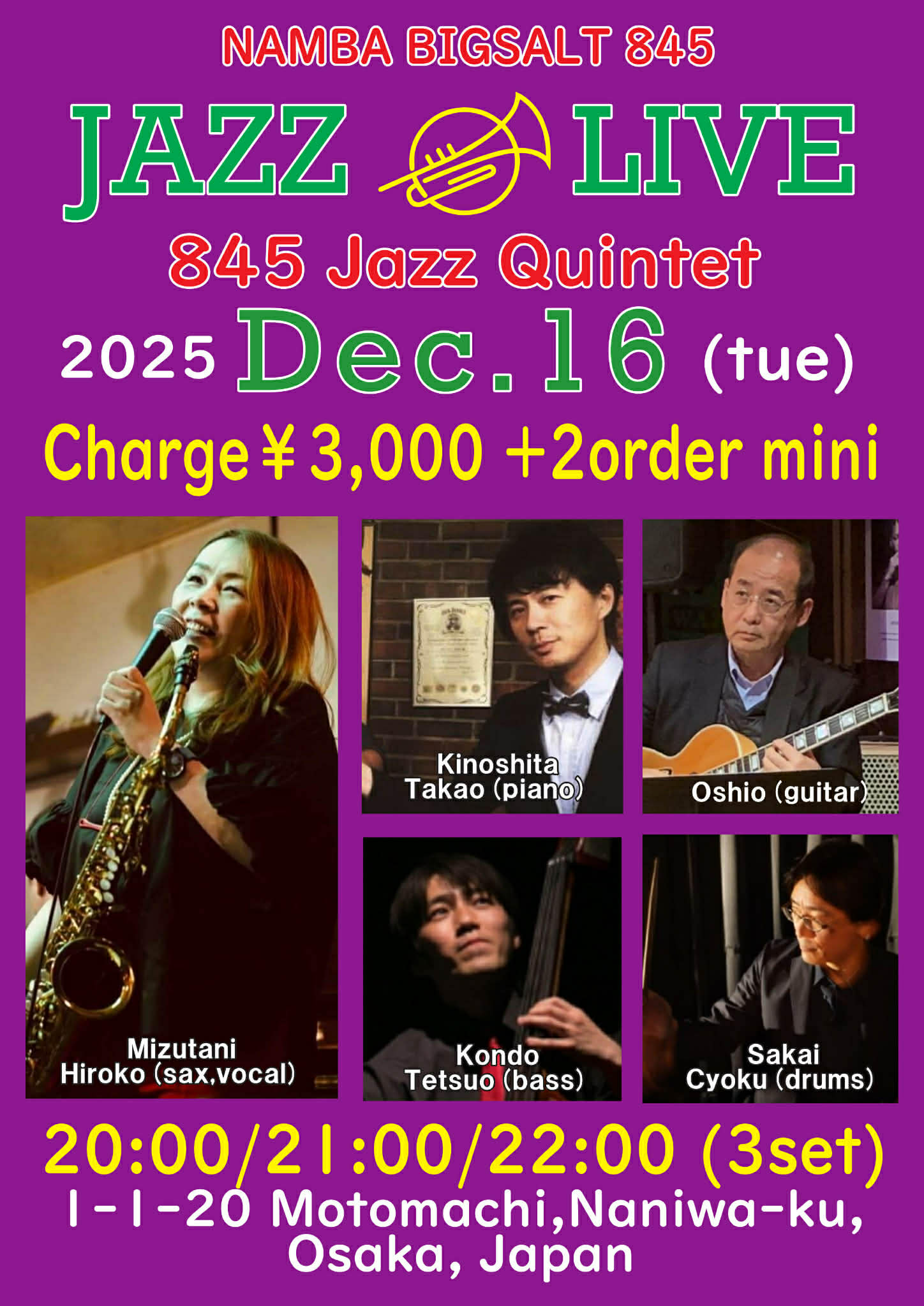 🔴2025/12/16(火)20:00- 難波Bigsalt 845 (3,000円/別途drink)