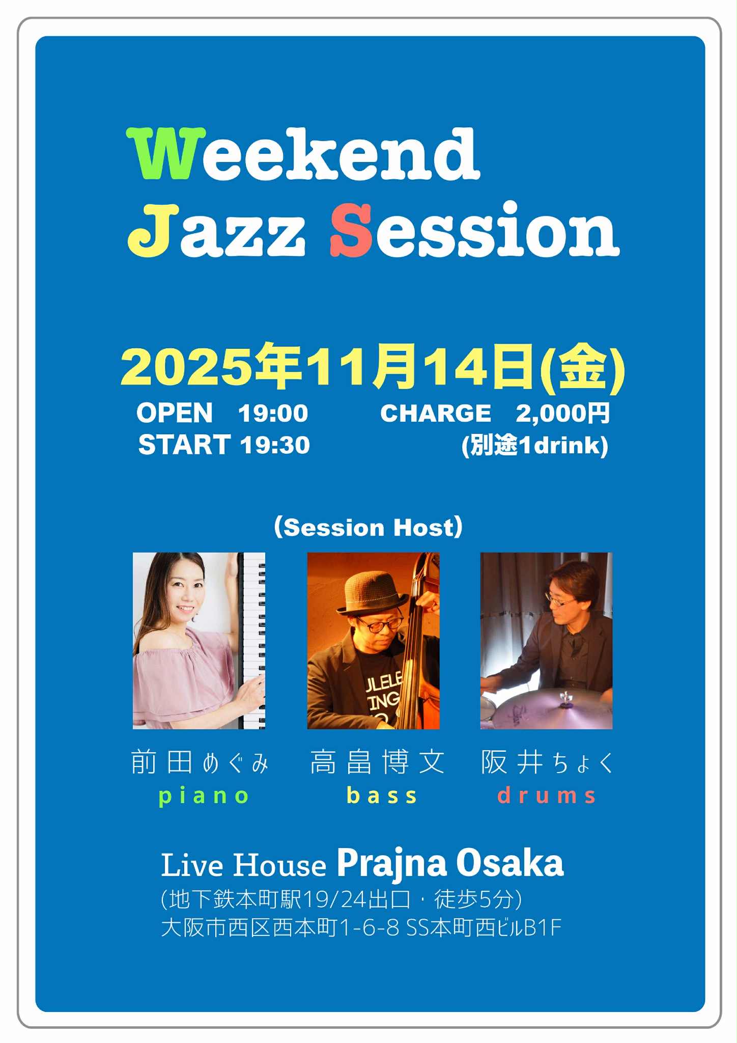 🟡2025/11/14(金)19:30-22:00 Prajna大阪(2,000円/別途1dr […]