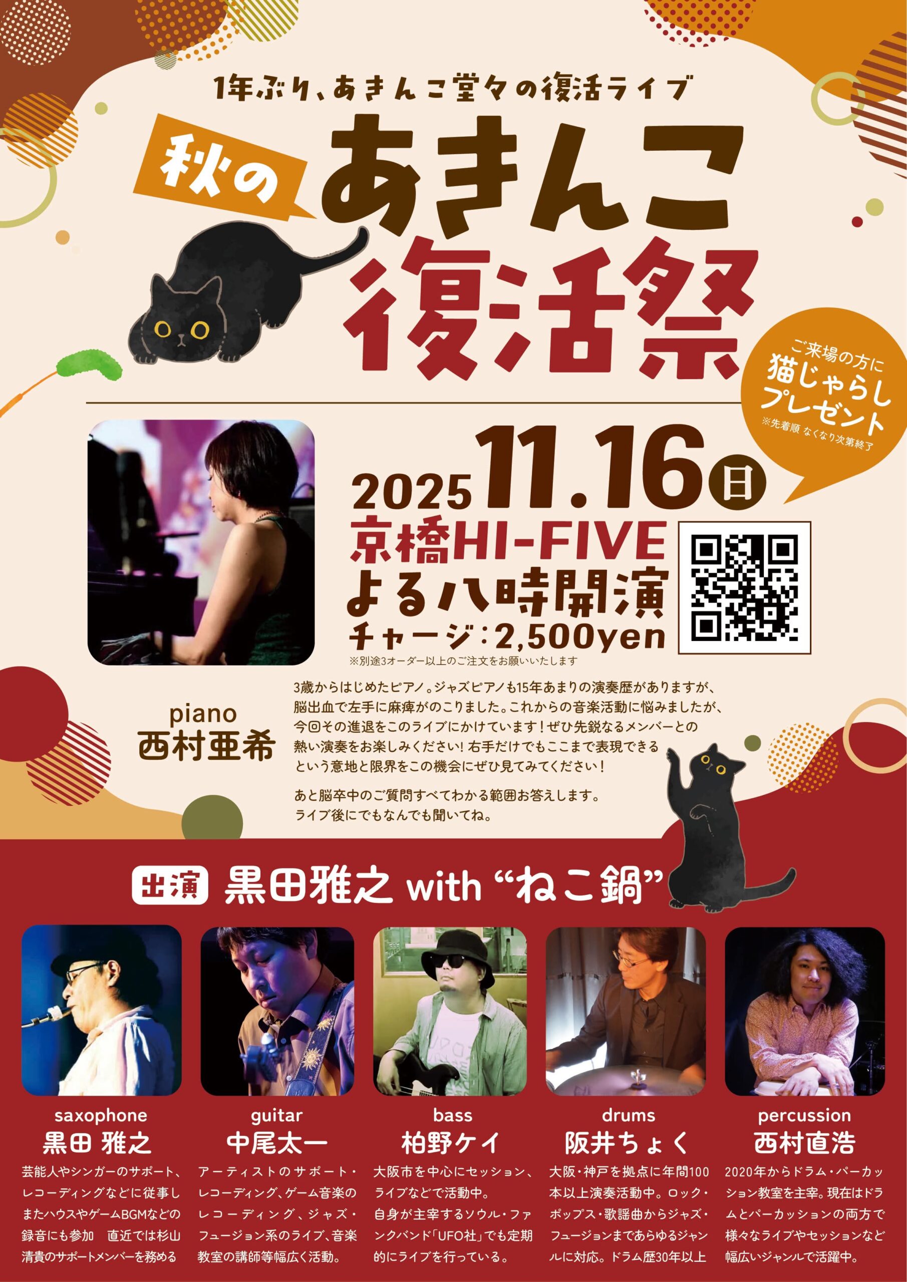 🔴2025/11/16(日)20:00-22:00 京橋HiFive(2,500円) 【あきん […]